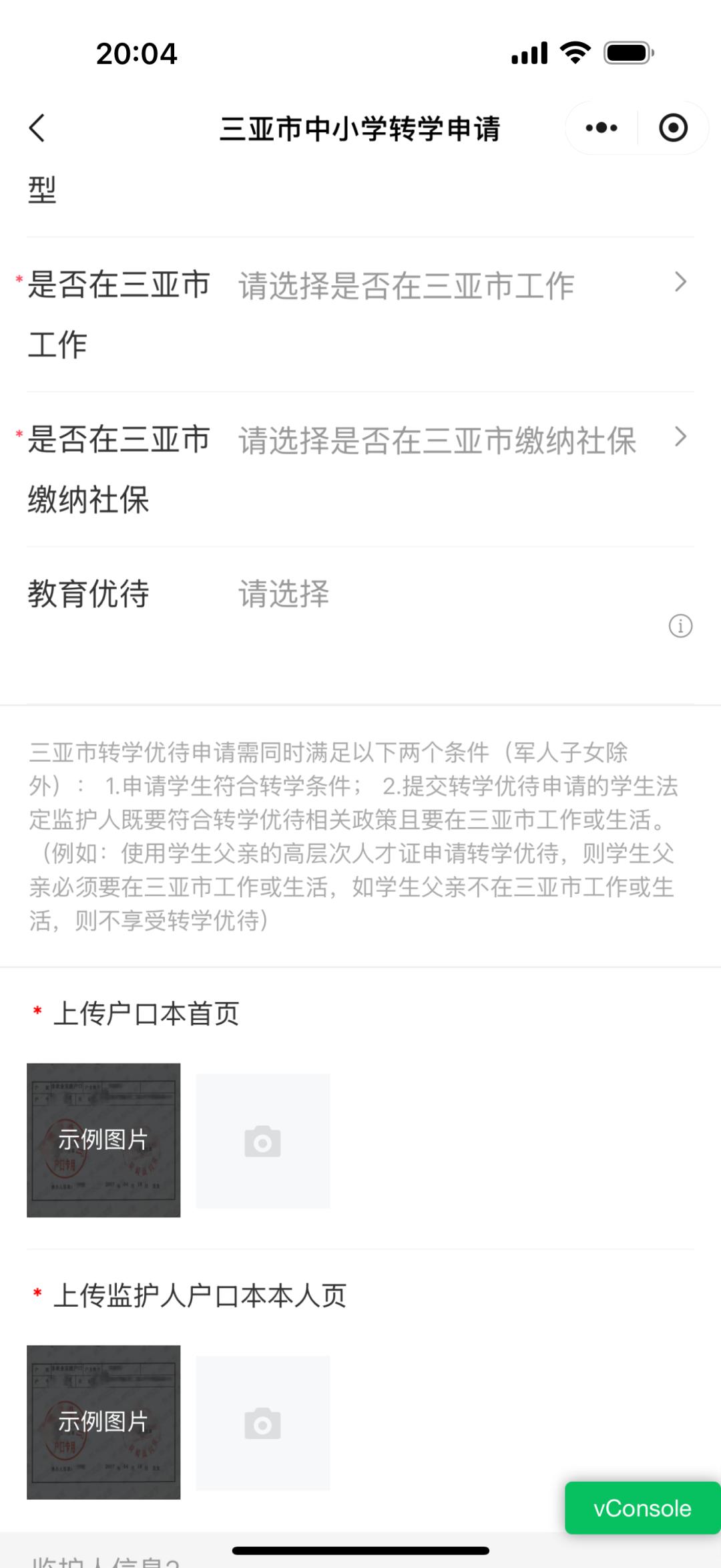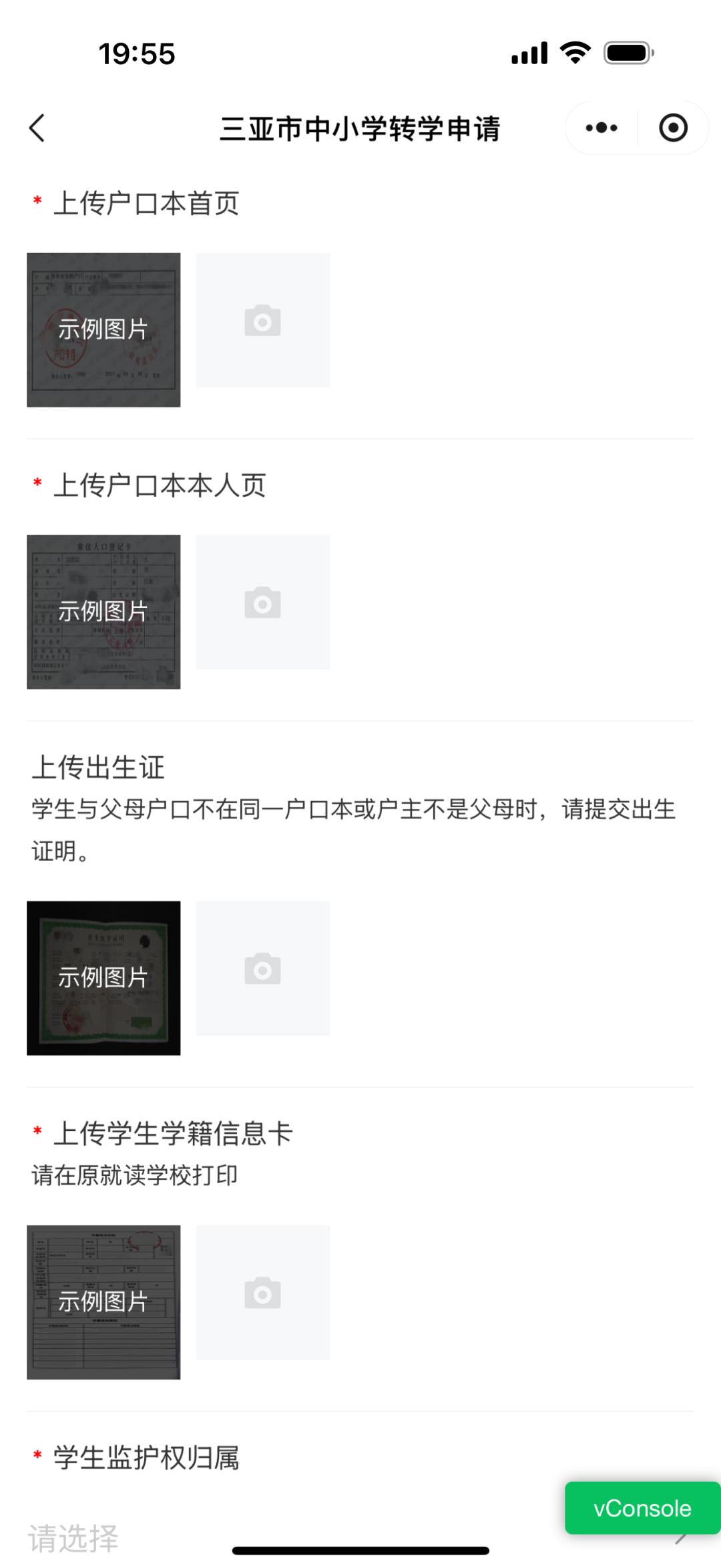 ④监护人为三亚市户籍,需上传户口本首页和本人页面;监护人为非三亚户籍,需上传三亚市监护人居住证,无居住证时上传居住证材料;