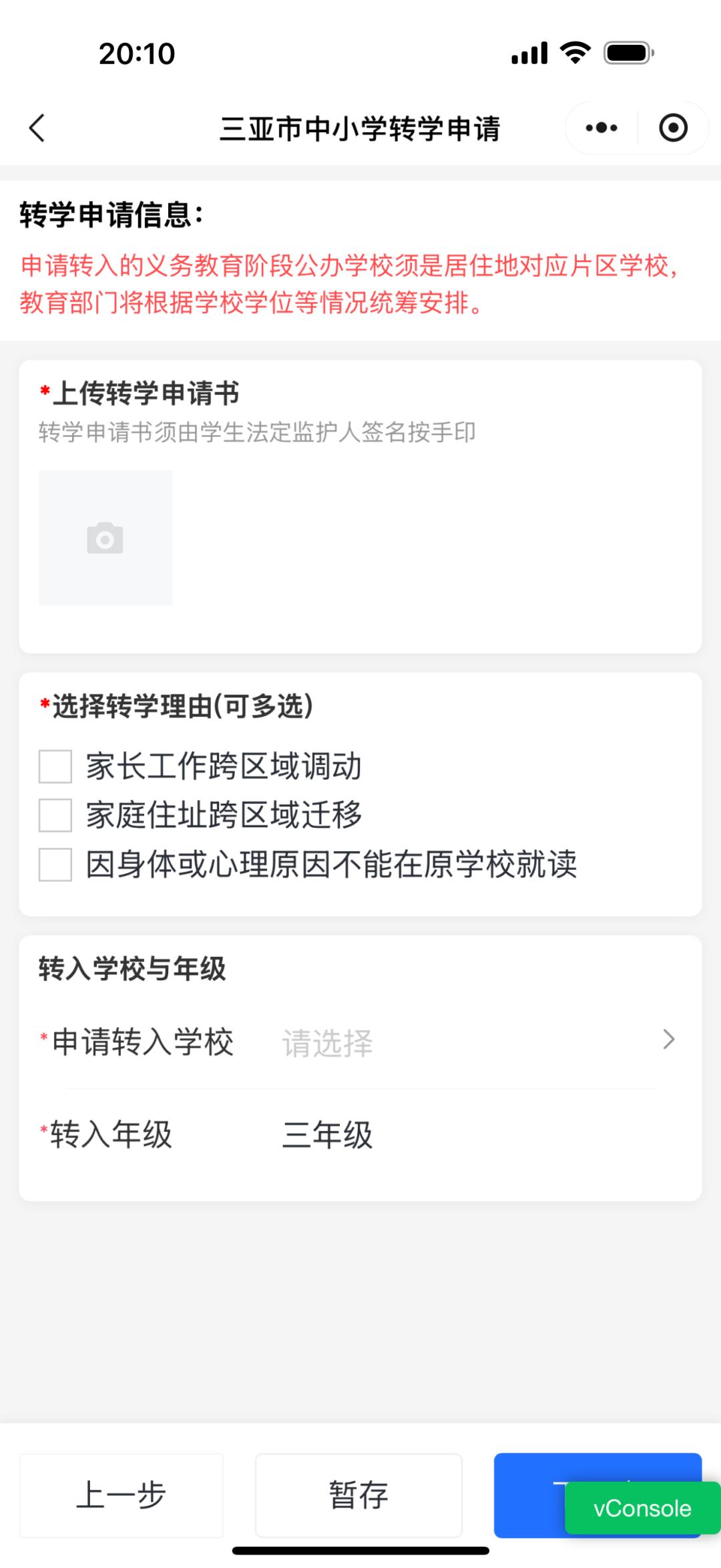 选择合适的申请入口,根据学生的转校年级、申请转学的学校类型进行填报。