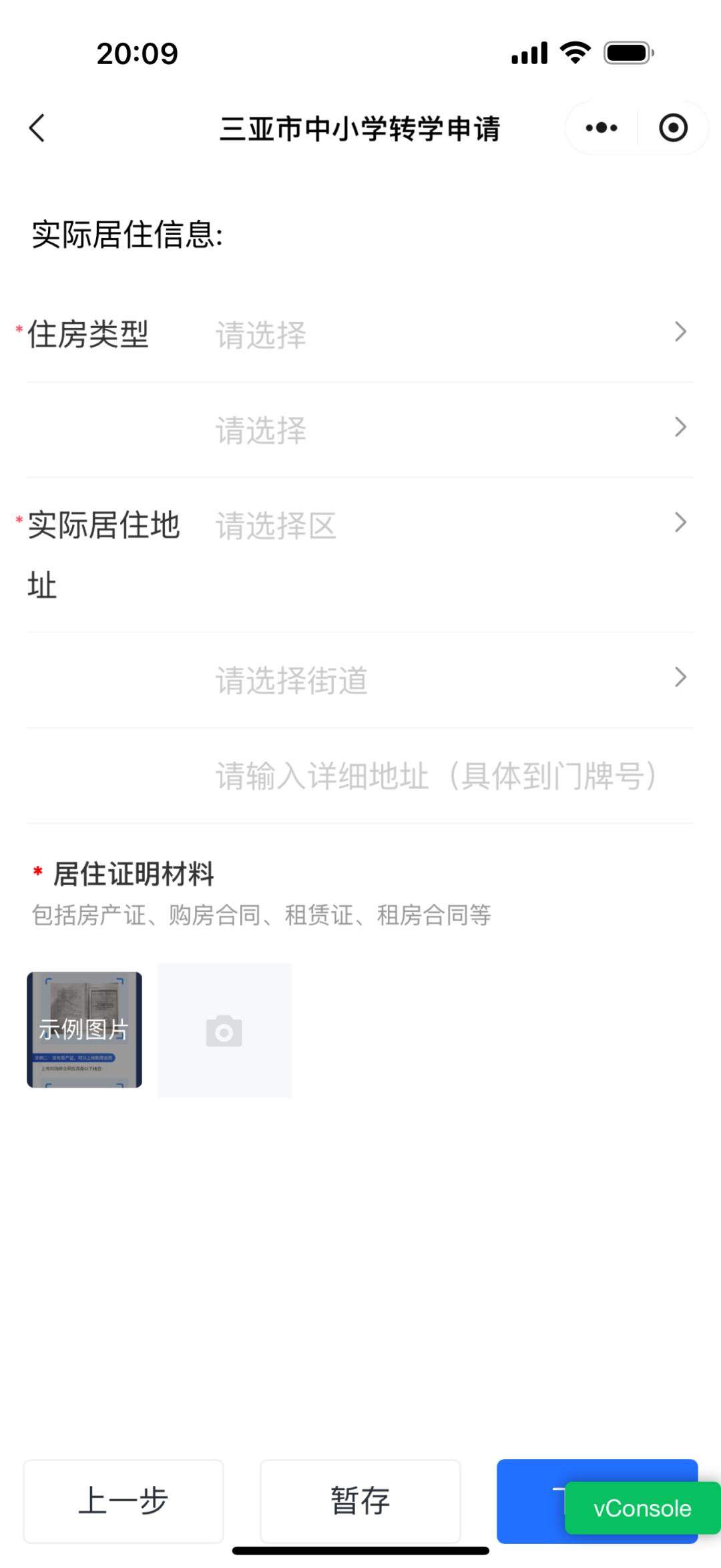 ②上传居住证明材料(包括房产证、购房合同、租赁证、租赁合同等)
