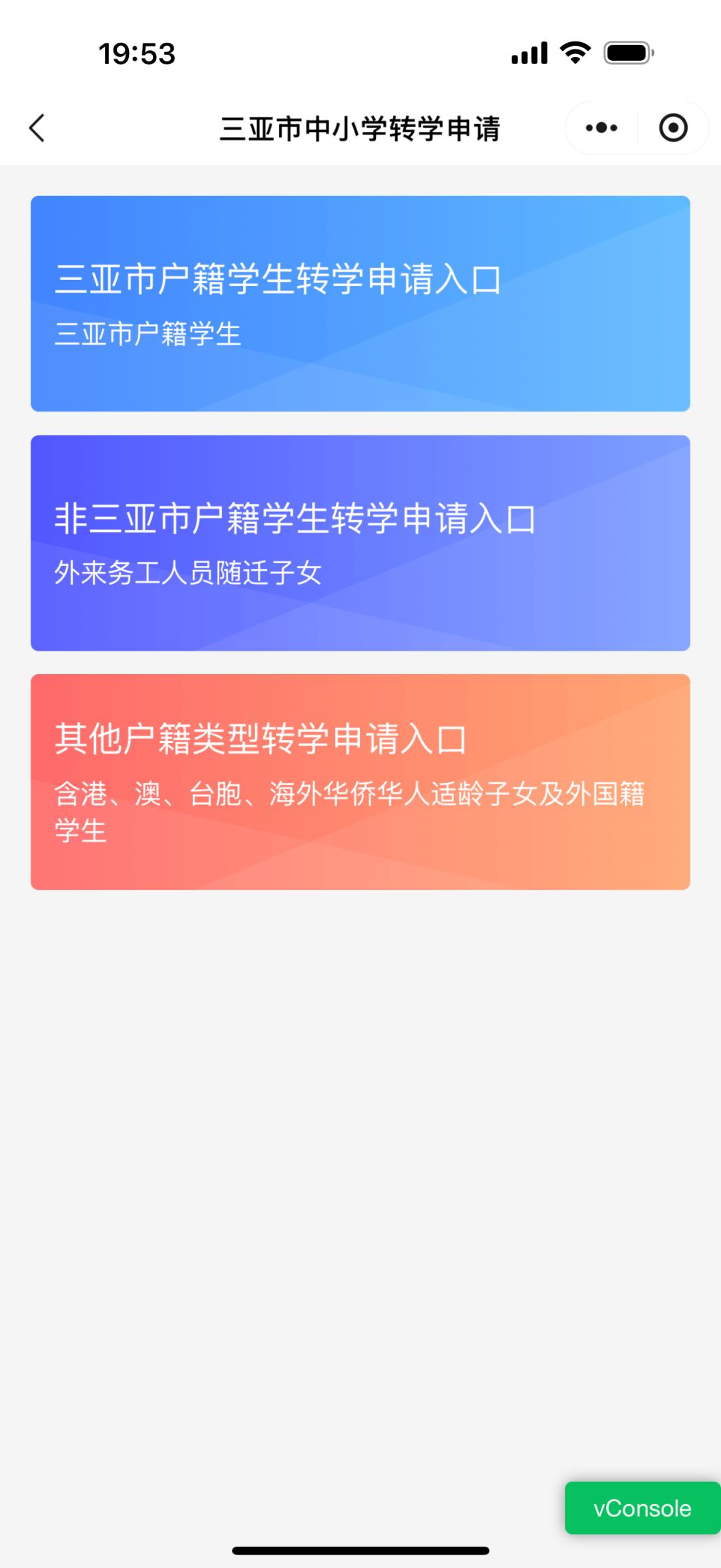 入口二:非三亚市户籍学生转学申请入口(外来务工人员随迁子女)。