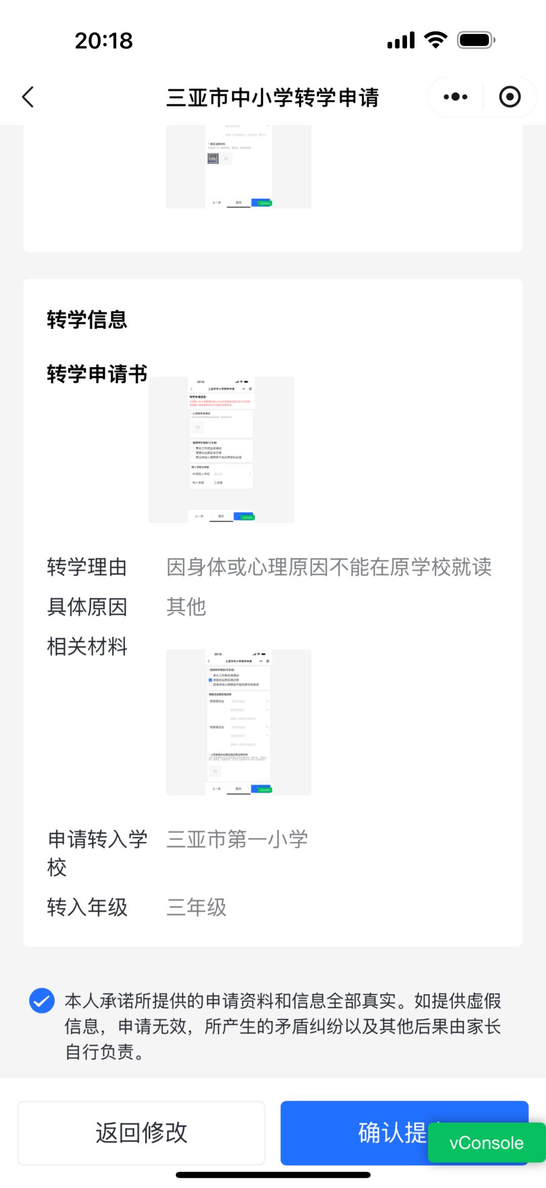 ①上传转学申请书,当申请转到高中时,还要上传中考成绩确认;