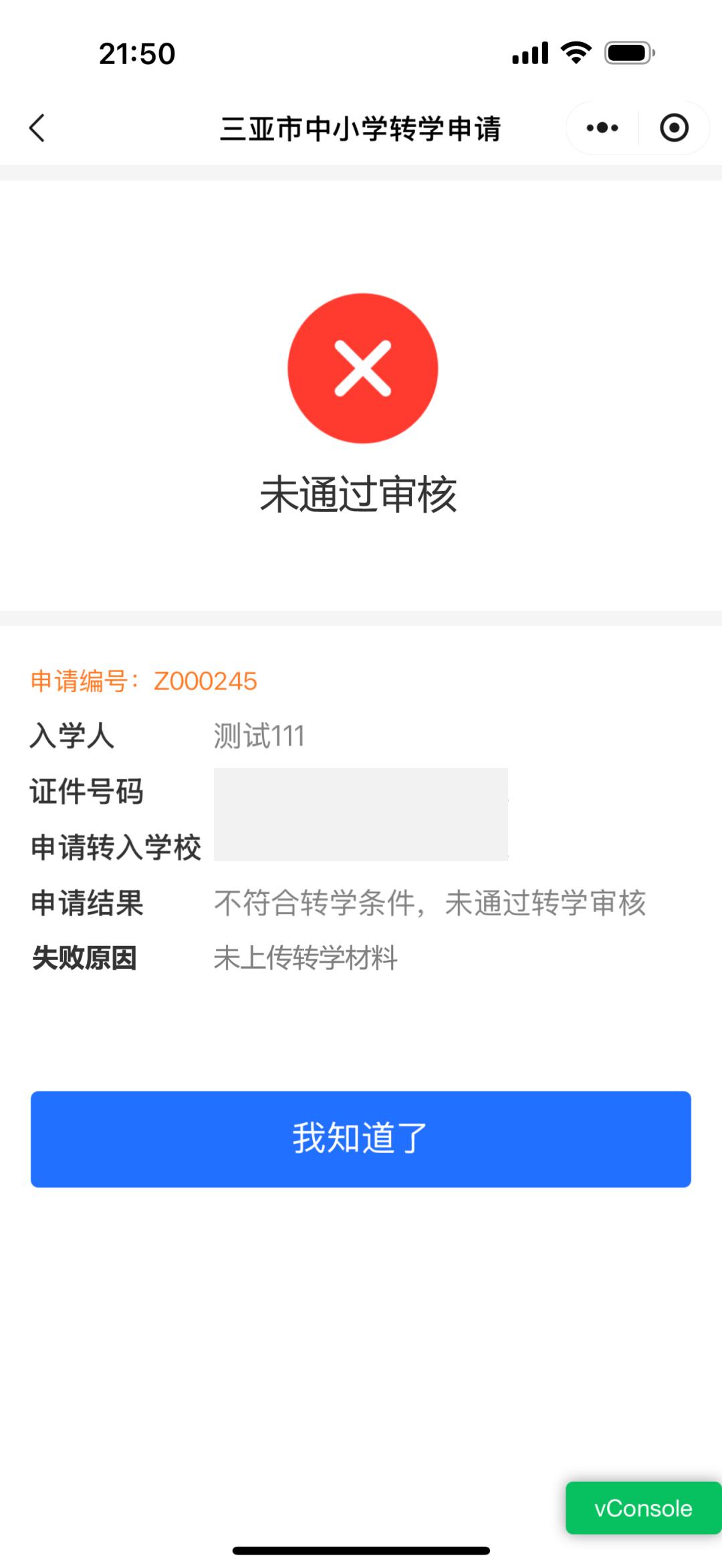 ②未经批准:本生提交的转学申请材料未经批准,可查看失败原因;