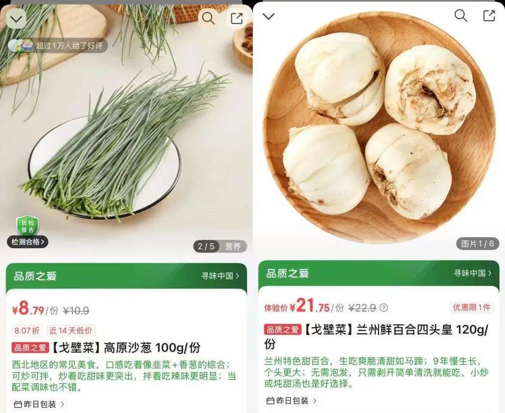 自2023年以来,丁咚开始推出“戈壁菜”系列,品种和销量逐年上升。数据显示,2024年,“戈壁菜”整体销量同比增长10倍以上,成为增长最快的蔬菜产区之一。其中,榆中莲花菜、兰州百合、武威番茄等重点产品的用户回购率和好评度均高于同品类平均水平。