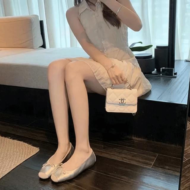 整个夏天都可以惊艳芭蕾美学。 ~ 毫不费力的美丽,灵动而浪漫,慵懒而知性,他们就是小香风丝绸面牛皮芭蕾舞鞋。