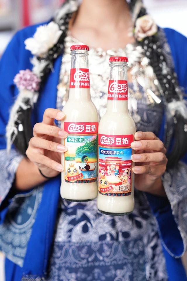 例如借文化深植特色,2024 2008年推出“广西十八怪”特色包装,巧妙融合了广西的自然风光、民俗文化和文化精髓,让每一瓶豆奶都成为传播广西文化的生动媒介,6。 作为“行走的壮乡名片”,点半豆奶让壮丽的广西走向全国,不断为广西文化旅游的发展注入新的动力。