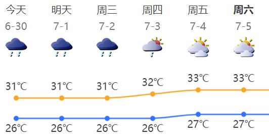 深圳气象台预报,我市今日阴天多云,有(雷)阵雨,局部可达暴雨;气温 26 ℃ -31 ℃;东南风 2-3 等级;相对湿度 70%-95%。