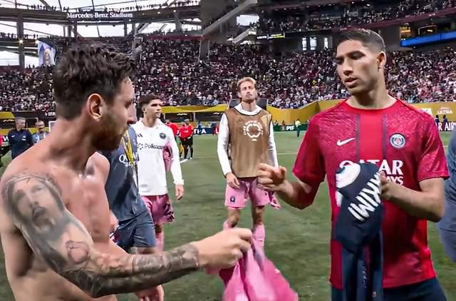 曾经被称为“姆巴佩小弟”的阿什拉夫,在比赛结束时,要求梅西换球衣。