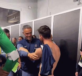 巴黎教练恩里克,更是热情地拥抱和与梅西交谈,看见曾经执教过的梅西,怎能不高兴呢?