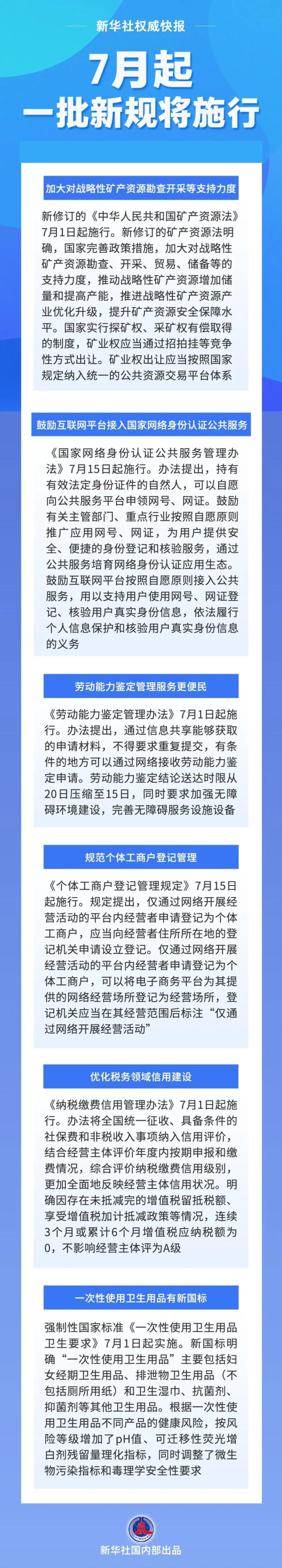 激励网络平台接入国家网络身份验证公共服务;劳动能力鉴定管理服务更方便;规范个体户登记管理...从7月份开始,将实施一批新规定。让我们来看看!