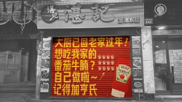 赞美与亨氏春节合作的一个案例:在一家暂停营业的餐厅卷帘门上布局设备,只花了2000元,却取得了极好的效果。相比之下,如果店内广告牌上出现同样的内容,客户很容易被视为商业推广和质疑。但当它自然呈现出“老板春节回家”的情况时,观众只是好奇地观看,心理防线也消除了。