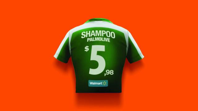 沃尔玛和球队合作,在球衣号码后面加了两个小数字,把球衣号码变成了价格标签。这不是在球衣正面印大的。 logo,而在背后一个没有人想到会有广告的地方,展示特价商品信息。