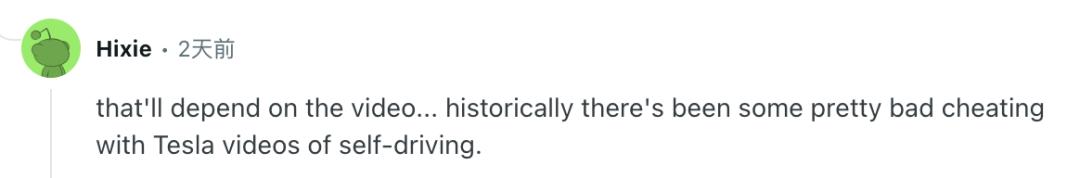存疑的是技术方案本身。当然有可能是老马“摆拍”,毕竟之前有过“前科”:2019年的FSD“完全自动驾驶”视频,后来被前员工指证是精心摆拍剪辑的,而且是马斯克亲自下的命令。
