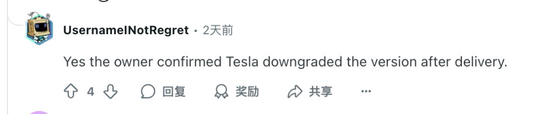 比如有网友透露了一个内部消息,说这名车主拿到车后,系统立刻降级成了最普遍的FSD: