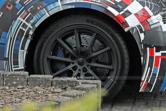 值得一提的是,新车测试车配备了全新的米其林车型。 PSS5 高性能轮胎,后胎尺寸达到 295/35 R20,展现出强大的赛道方向。另外,充电插座采用上升式设计,支持电动开闭,提高日常使用的便利性。