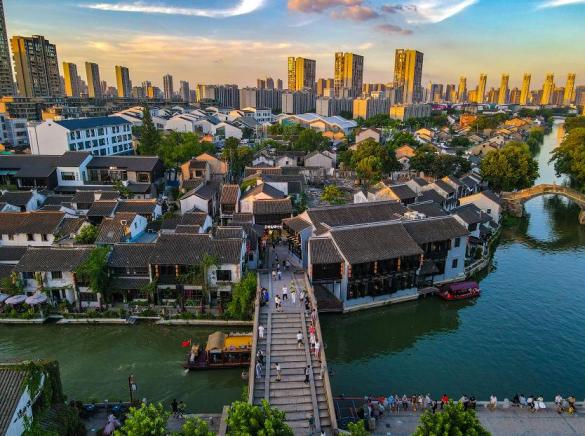 千年运河与现代城市交织的水域