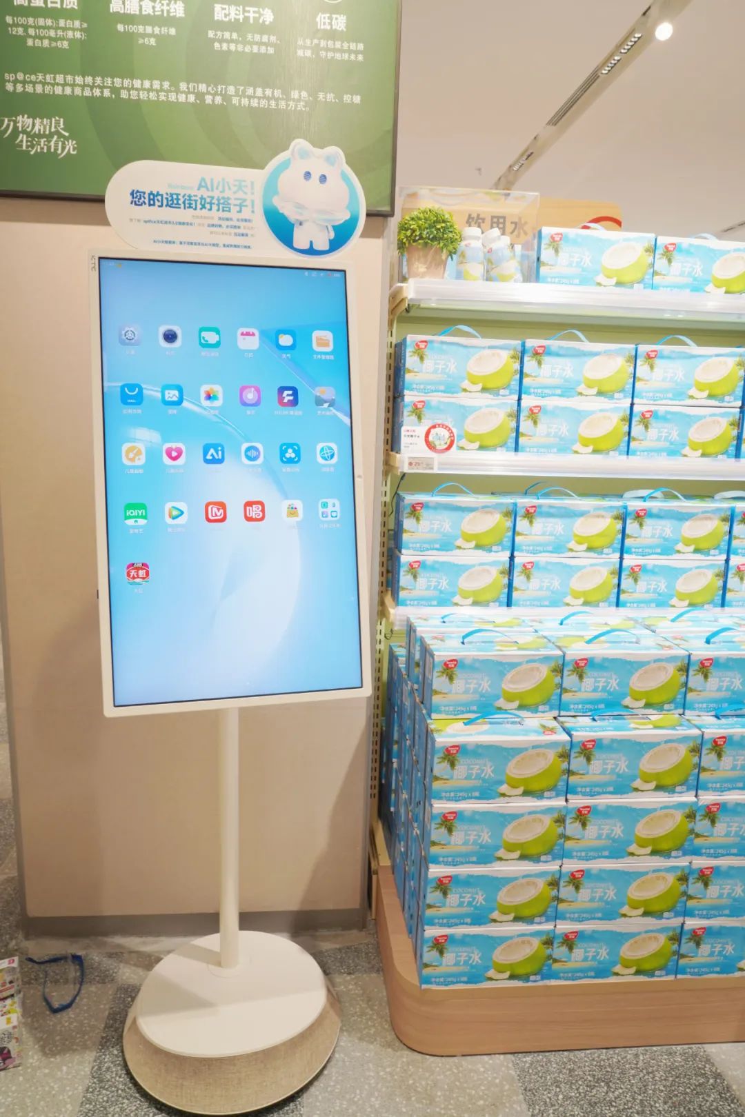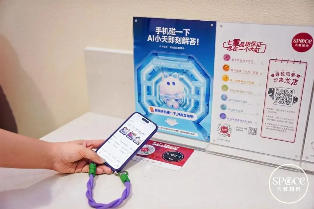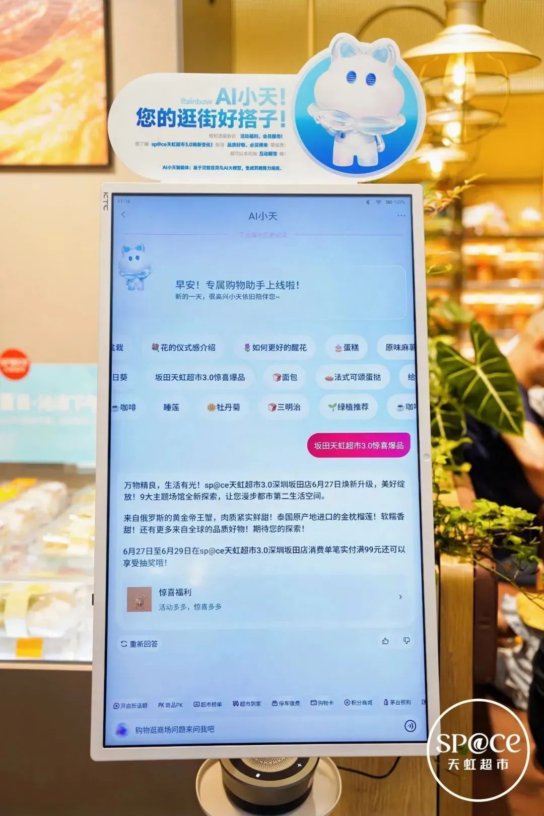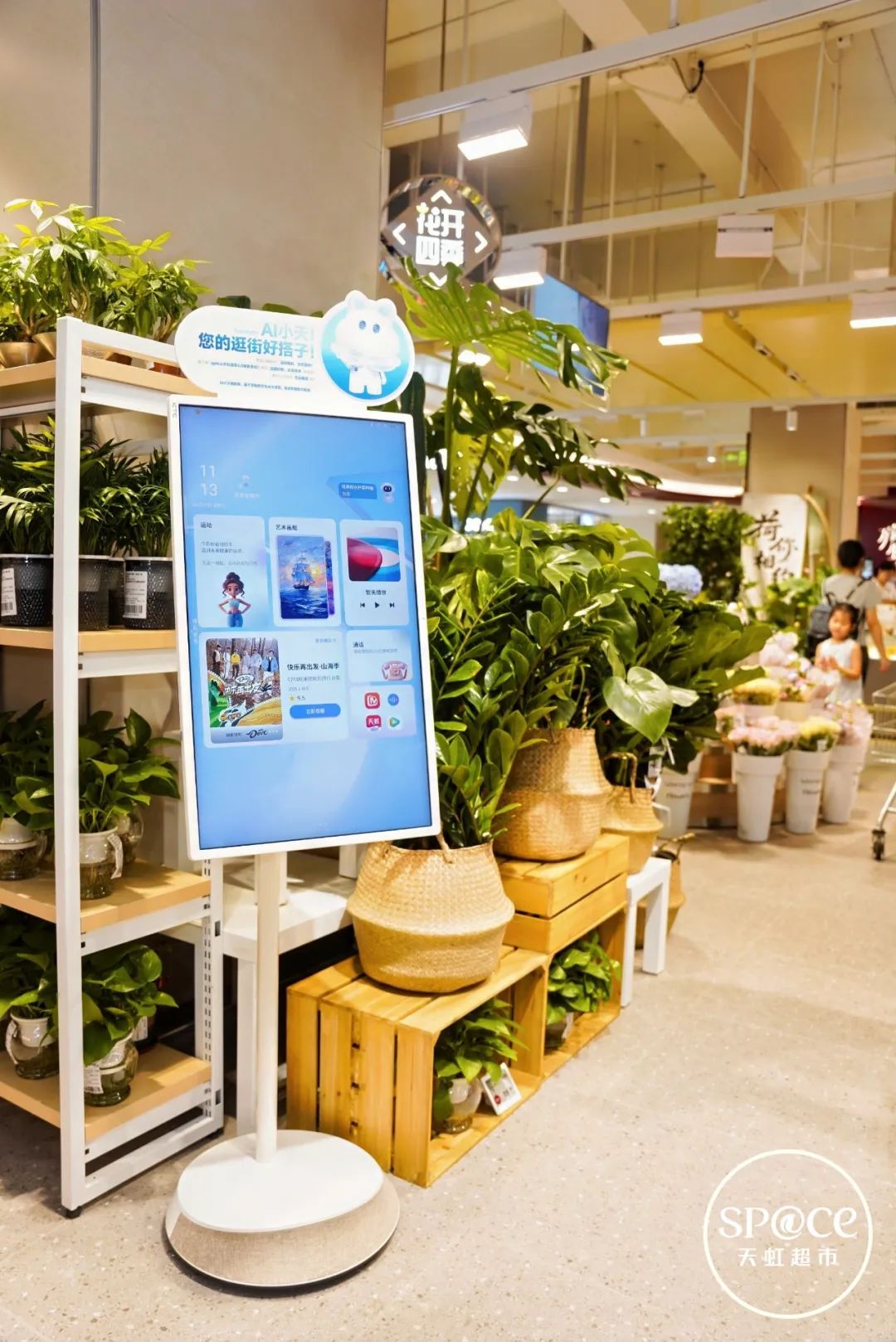 这是天虹数科第一家AI试点店,sp@ce3.0坂田店负责“AI “零售”试验田的作用,科技正逐渐隐藏在空间叙事中。