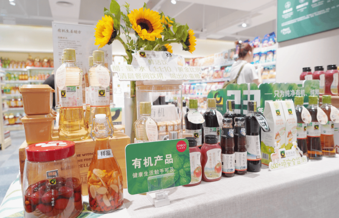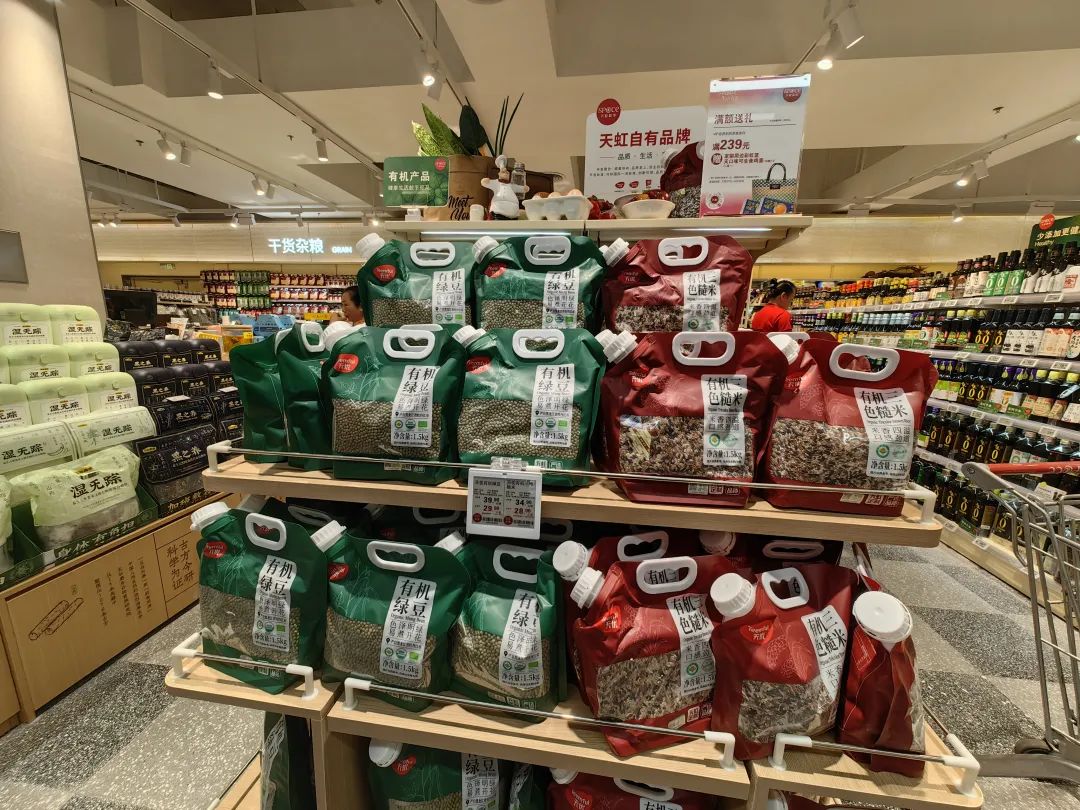 洞察消费者的健康需求,天虹有机系列,清洁系列,安心系列,排场上有明显的标识。