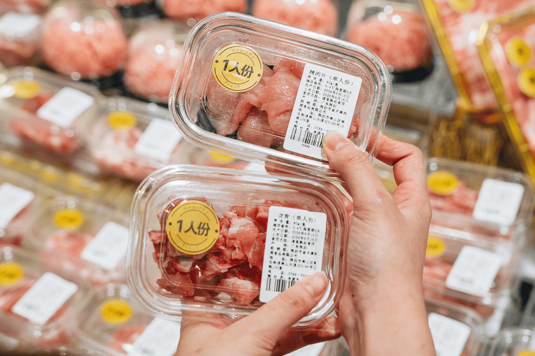 以家庭餐桌刚需的鲜肉品类为切入点, “位置 烹饪方式 食用人数” 三层打造产品,推出如只卖的产品。 3.99 块的 80g 一人份精切肉丝,以及适合煎、炒、煮等多种场景的精品梅花烤片,五花肉片等。