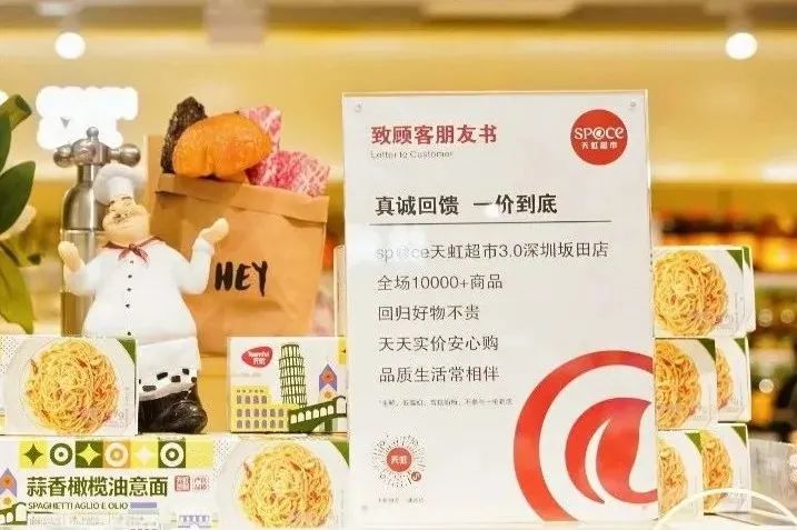 经过近一年的积累和打磨,这次新开的 sp@ce3.0 坂田店深化了 "好货不贵" 全新的概念起点。一方面,店面提高了民生粮、油、奶等食品及日化品类。 “不动价” 商品比例,平衡价格波动;另一方面,面对超市 10000 一件核心商品实施减价,整体减幅达到 15%,突显 "真诚回馈,一价到底" 决心,着力构建长期稳定的客户价格认知。