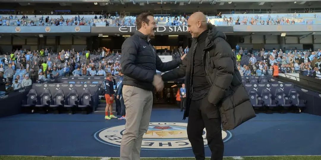 《足球教练》剧照:瓜迪奥拉向拉索致敬。