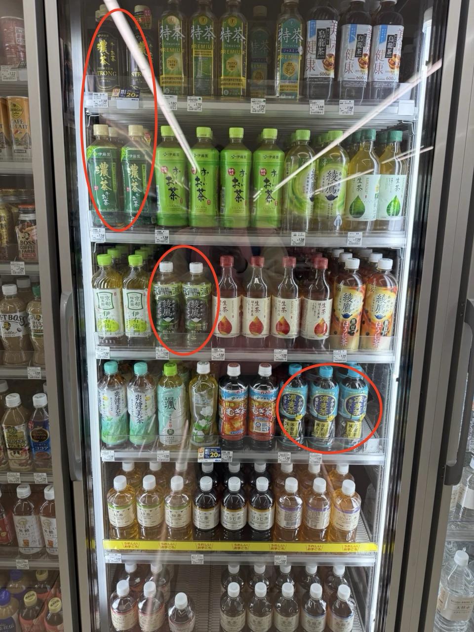 现在日本很多便利店的货架上,都摆着几瓶瓶子写着“浓浓的”い“茶”字样的饮料。尽管它们的比例并不高,但是在整体色彩鲜艳的饮料中,其深色包装令人“眼前一暗”。