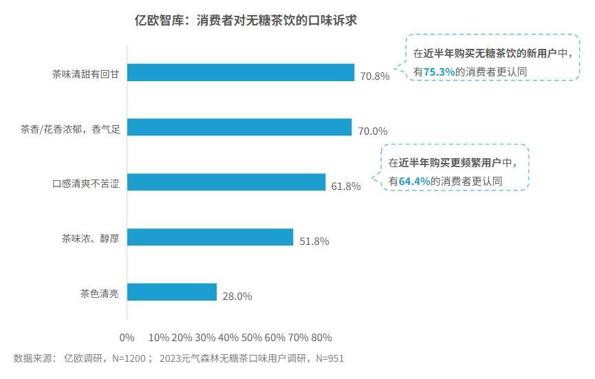 中国消费者对无糖茶的口味偏好也在发生变化。根据亿欧智库《2023中国无糖茶产业白皮书》,51.8%的消费者选择了“茶味浓郁醇厚”的“消费者对无糖茶的口味需求”。基于消费者的需求,为国内高浓度无糖茶的落地提供了土壤。