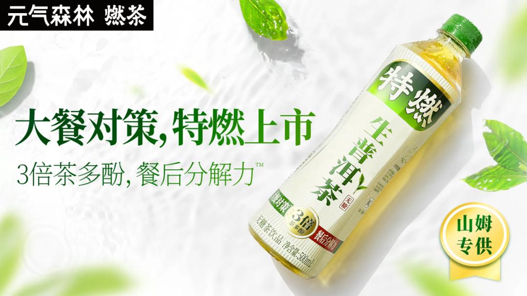 2024年6月,元气森林燃茶推出“特燃普洱茶”,并在全国山姆会员店上架。从产品包装来看,“特燃普洱茶”以“三倍多酚”和餐饮场景为主要卖点。据元气森林介绍,该产品采用生普洱茶为原料,茶多酚含量是熟普洱茶的3-4倍。