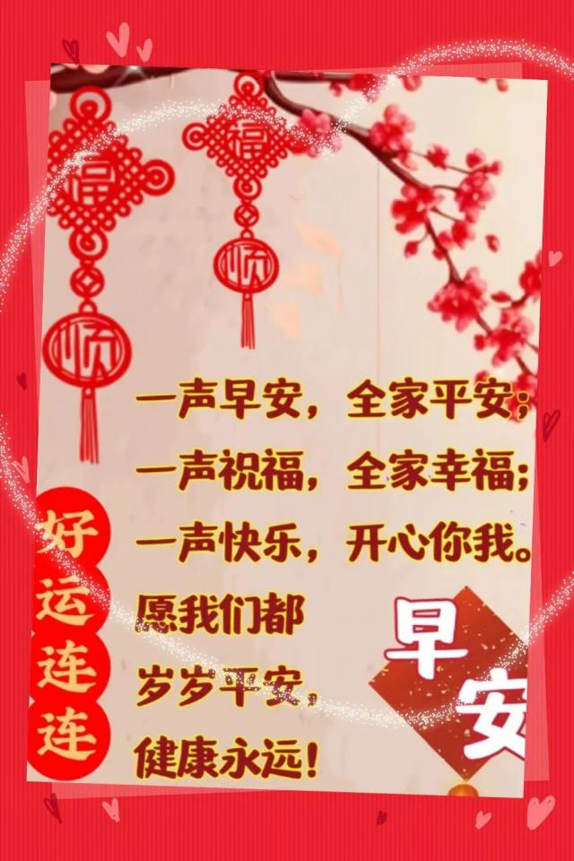 早上好,亲爱的朋友们!在这个美丽的早晨,愿你的微笑永远像阳光一样灿烂,愿你的努力像微风一样带来成功和成就!早晨的阳光迎接人们,愿你的心情像蓝天一样清晰!愿你的脚步像早晨的鸟一样轻盈,愿你的每一天都充满幸福和快乐!