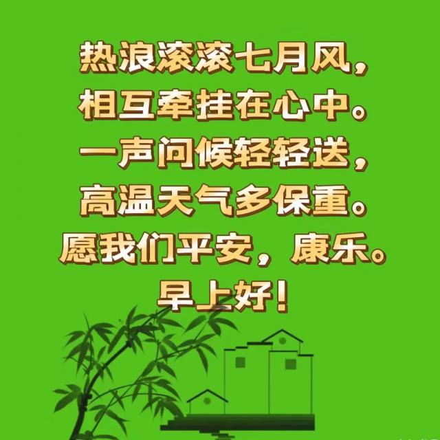 七月夏天到了,气温高,要注意预防中暑,清热去火绿豆粥,补充能量,保持健康。水果和蔬菜,不要生气,适当运动,快乐。早上好,快乐!平淡的时光总是召唤美好,每天都有好运!