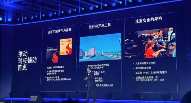 “两年前,当我们来到中国时,我们意识到一个重要的机会迫切需要我们加快投资—— L2 高速驾驶辅助、城市驾驶辅助、记忆停车技术在中国迅速普及,高通采用两步走的策略,迅速推出芯片,赋能合作伙伴。首先,我们致力于芯片本身。我们致力于确保我们提供的芯片在安全性、性能、每瓦特性和性价比方面达到行业领先水平;二是提供软件和开发工具,满足当地汽车生态需求。除工具外,我们还提供工程支持能力,确保客户能够在 Snapdragon Ride 在平台上实现所需的功能。" Nakul Duggal 表示。