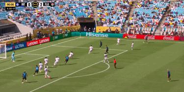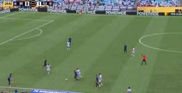 第 90 4 分钟,弗鲁米嫩塞边线球给出,国际米兰救援非常接近,赫克勒斯得球在禁区左侧推进远角低射入网,国际米兰 0-2 落后 ↓