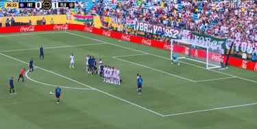 第 38 在几分钟内,迪马尔科主罚前场定位球直接打门的视角被没收。 ↓