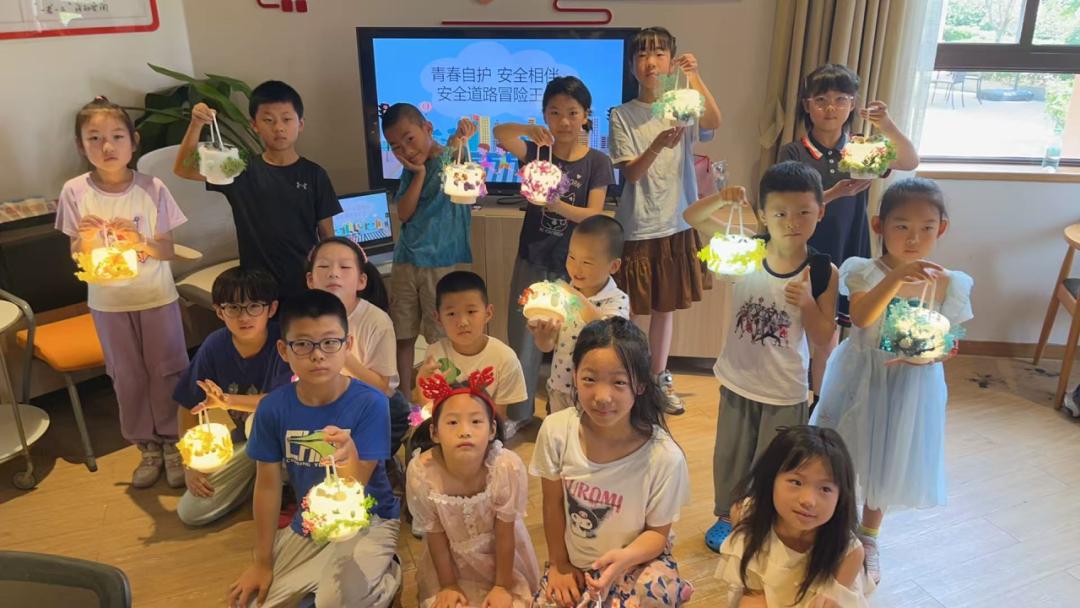 活动结束时,孩子们和父母用天然干花、贝壳、灯罩等材料制作独特的星空干花台灯。灯亮的时候,花的剪影会提醒孩子“安全出行,生活才能像花一样美好!”