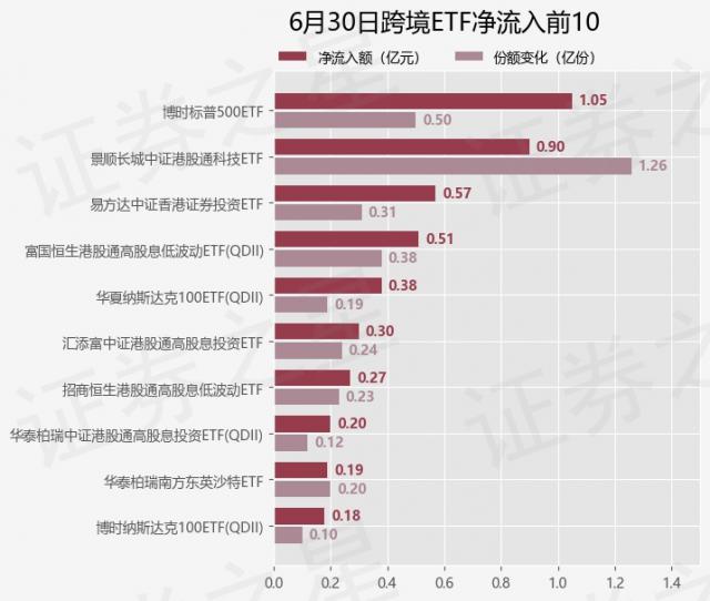 当天有 24 只跨境 ETF 资金净流入出现在基金中,其中博时标普是净流入排名第一。 500ETF(513500)增加了份额 5000.0 万份,净流入额为 1.05 亿元。