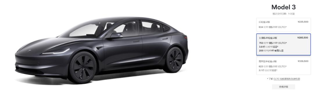 其中,Model 长续航版的续航时间为713km。(CLTC 工作条件)变成753公里(CLTC 工作条件),百公里数据从4.4秒变为3.8秒,售价上涨10,000元至28.55万元。恢复Model Y长续航版的续航时间也随之增加,从719公里(CLTC 工作条件)升级为750公里(CLTC 工作条件),价格不变。