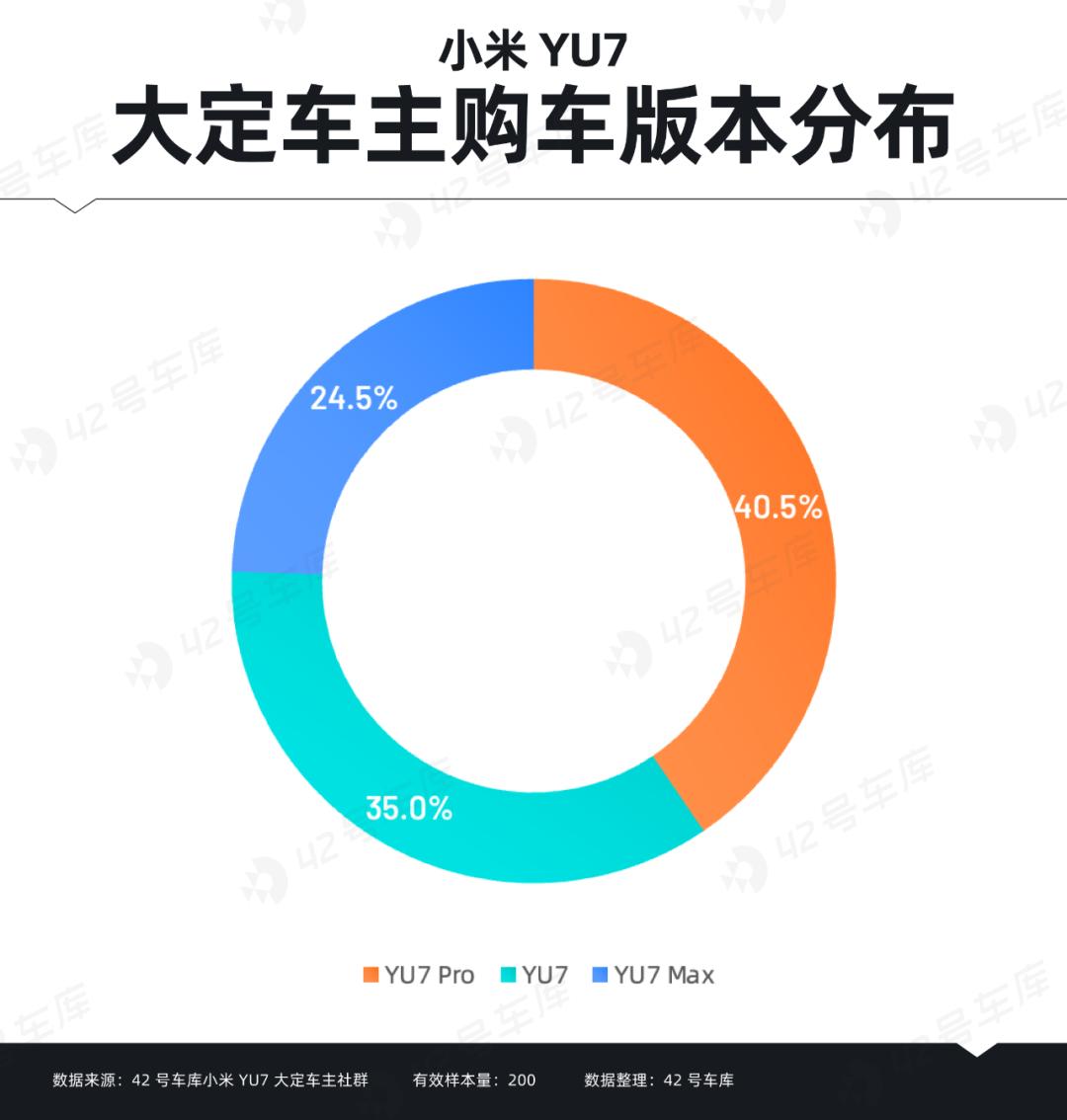 小米 YU7 Pro 该版本是受访者选择最多的版本,占比达到 40.5%;其次是 YU7 专业版本(35%)和 YU7 Max 版本(24.5%)。
