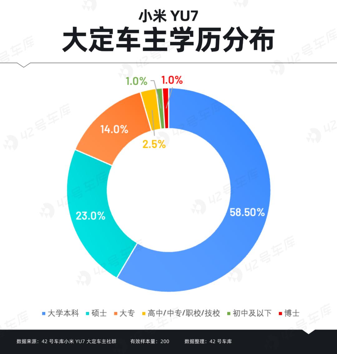 这次调查的覆盖面 200 有效的顾客,揭露小米 YU7 关键用户画像:他们年轻,有消费活力,文凭高,对科技敏感,追求性价比,追求舒适。