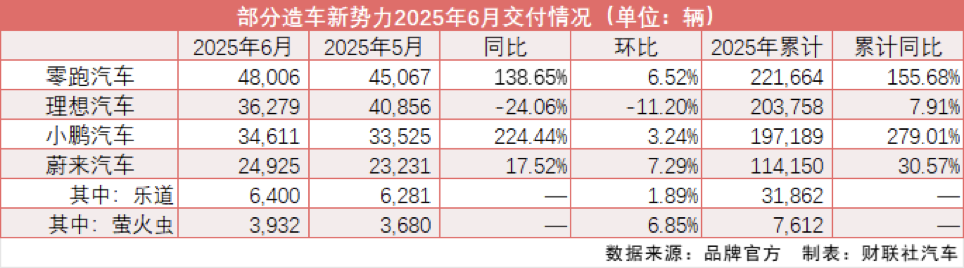 2025汽车市场半年考试:零跑第一夺新力量半程冠军,“蔚小理”均达第二季度指导。