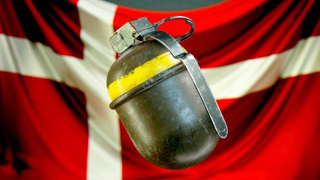 丹麦 M/54 以西方迷彩为背景的手榴弹