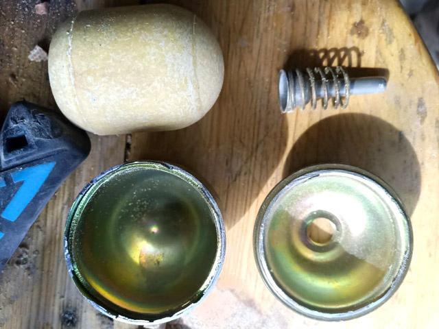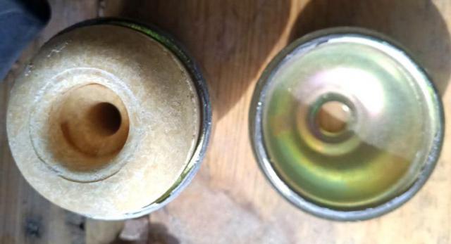 引信延迟时间大概 3.2 至 3.5 秒,所以最好不要随意探索和玩耍。 M/54 在手榴弹上拧下的完整引信部件,可以看到延时管和底火起爆器。
