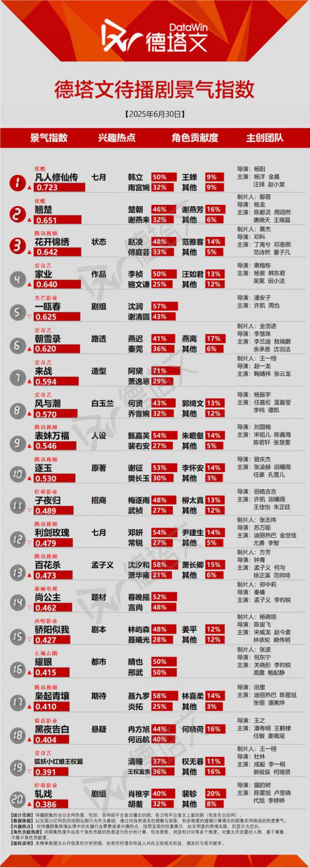 《锦绣芳华》开播景气指数 1.749 高起点,暑期档竞争加剧,头部剧排名面临洗牌。