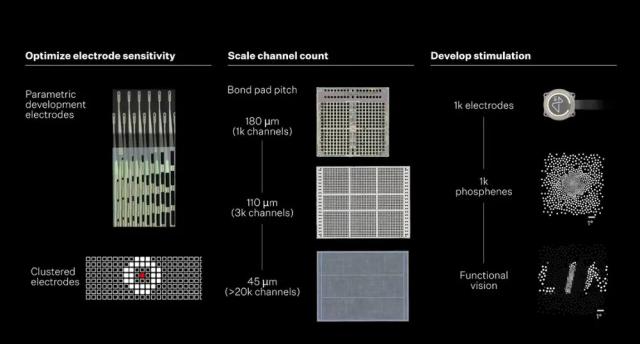 2026 年度:将电极数量从 1000 个增加到 3000 第一个“盲目”受试者可以自主导航,重新获得视觉,最初是低分辨率导航,最终达到超人多波段视觉。