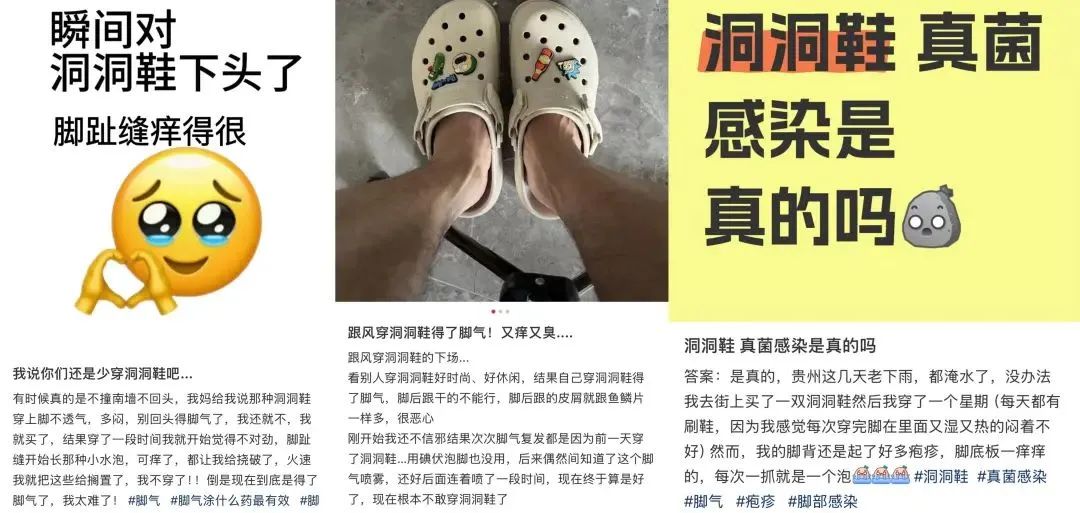 洞穴鞋的结构和材料容易积水和出汗。虽然鞋子上有洞,但不能有效吸收汗水,保持脚底干燥。夏天出汗后,脚又湿又冷又暖,更容易滋生真菌。此外,一些劣质洞穴鞋由再生塑料或人造橡胶制成,会堵塞毛孔,容易引起过敏、过敏性皮炎等疾病。