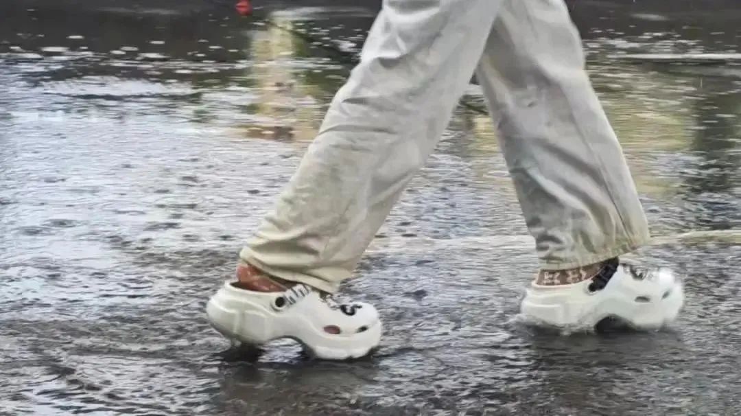 穿洞鞋时要避免在湿滑或不平坦的道路上行走,避免在雨天穿,以免摔倒或滑倒。
