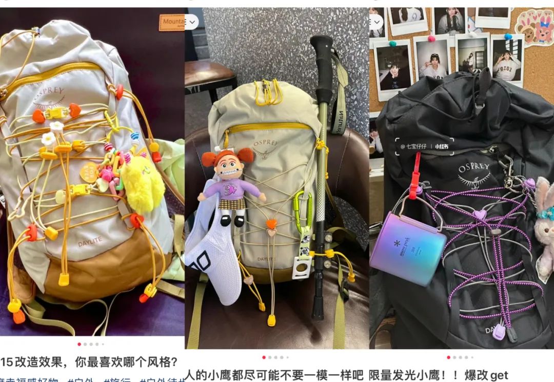 有人在小红书上推出「户外包改造」话题,力求让每一个看上去设计感很强的包包都能看上去尽可能的带上个人风格。