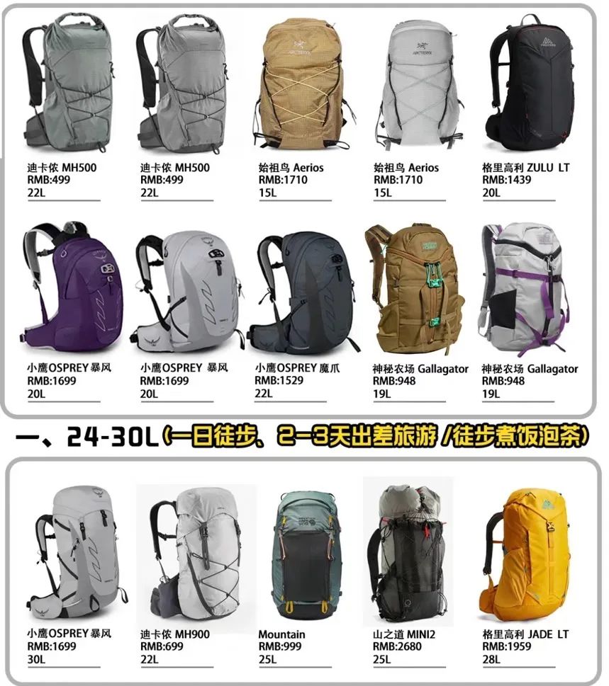 另外,户外包的价格,肯定也打动了一些消费者的心。迪卡侬500元,OSPREY1000元左右。、2000年的始祖鸟总能找到一个设计满意、容量充足、可以轻松携带的户外包装。与城市美女相比,每转一圈都是5000。、包包容易过万。户外包装的性价比真的很高。