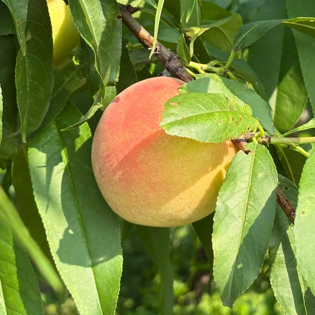 现在,果园里的“玉露”桃子也将上市,果实圆润饱满,平均单果重4两,大果可达半斤。剥去薄嫩的果皮,晶莹果汁丰富,入口兼顾蜂蜜般的甜味和淡淡的自然香味,甜度可达17~18度。表面细长的绒毛下,白里透粉的果肉鲜嫩欲滴,仿佛在诉说着大自然的馈赠。今年的气候条件特别有利于桃子的生长。桃树开花授粉时,天空晴朗,最近雨水充足,阳光充足,为桃子的生长创造了极好的环境,有效促进了糖分的积累和风味物质的形成,促进了今年桃子产量和品质的“双丰收”。