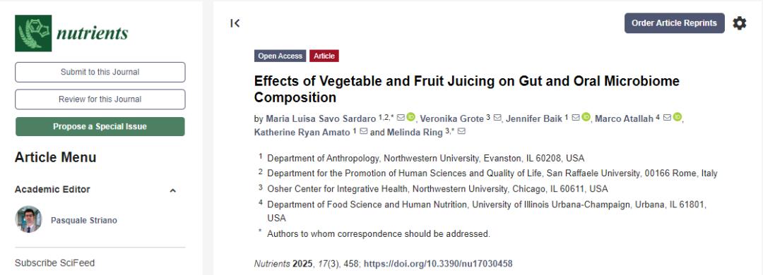 ①Maria Luisa Savo Sardaro et al, Effects of Vegetable and Fruit Juicing on Gut and Oral Microbiome Composition,Nutrients(2025). DOI: 10.3390/nu17030458