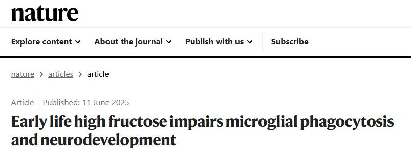 ④Wang, Z., Lipshutz, A., Martínez de la Torre, C.et al. Early life high fructose impairs microglial phagocytosis and neurodevelopment. Nature (2025). https://doi.org/10.1038/s41586-025-09098-5