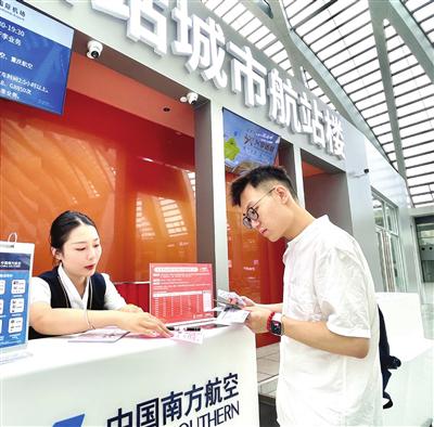 来到北京大兴国际机场天津西站城市航站楼,6个 一个智能值机柜台排列整齐,乘客可在此办理东航、南航等。 12 国内航空公司航班值机手续。